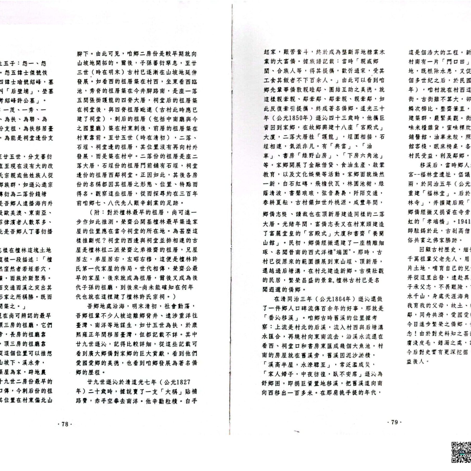 晋江市龙湖镇檀林村是远近闻名的侨乡,自明末清初社会动荡,许多村民前往台湾、南洋谋生,据族谱记载,当时“亲戚乡间、合族人等,得其提携,欢忻过宋,受其工食其饭者不下百余人。”因此华侨一带一,亲戚同乡牵引提携,檀林村最终成为著名侨乡。